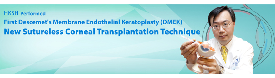 Hong Kong Sanatorium & Hospital (HKSH) is pleased to announce that a new corneal transplantation procedure – Descemet’s Membrane Endothelial Keratoplasty (DMEK), a minimally invasive sutureless corneal transplantation technique, was firstly performed in Hong Kong last October 2012. The new technique involves transplanting an ultra thin layer of donated corneal cells (or the graft) of 0.01mm in thickness, which is 55 times thinner than the graft used in Penetrating Keratoplasty (PKP) technique and 15-20 times thinner than that used in the existing generation of lamellar transplantation technique – Descemet’s Stripping Automated Endothelial Keratoplasty (DSEK/DSAEK), resulting in lower rejection rate and faster visual recovery.