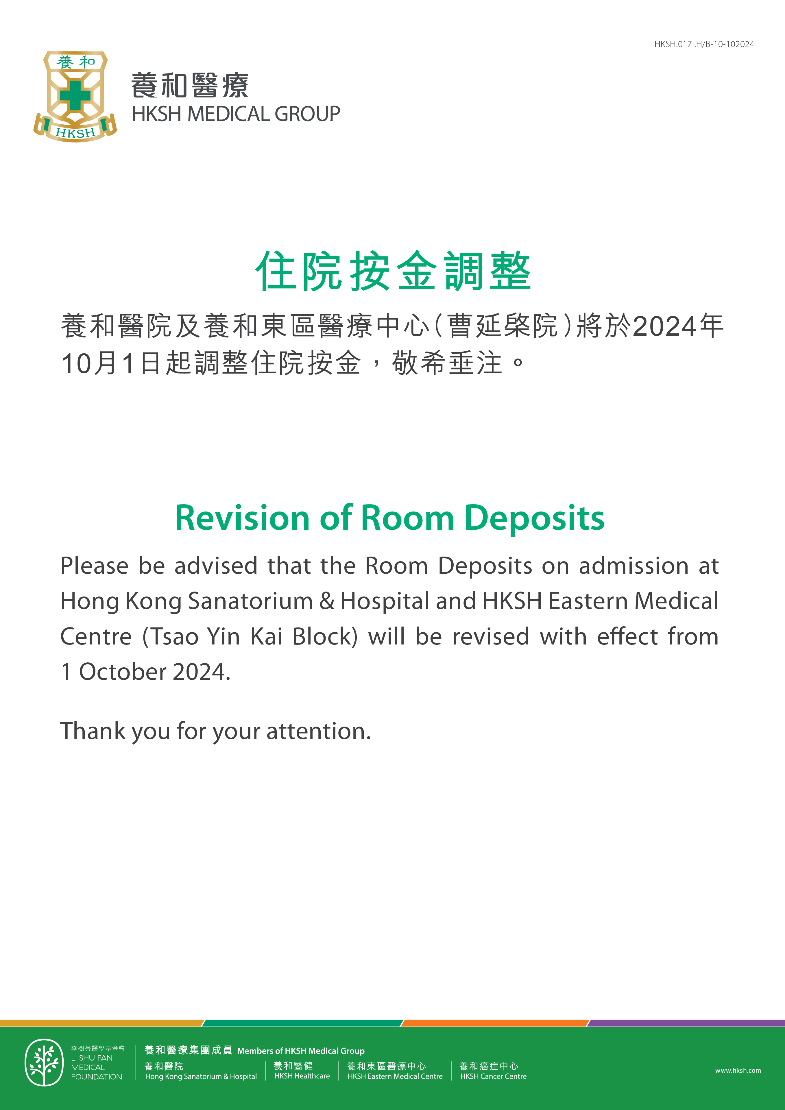Revision of Room Deposits on Admission with effect from 1 October 2024