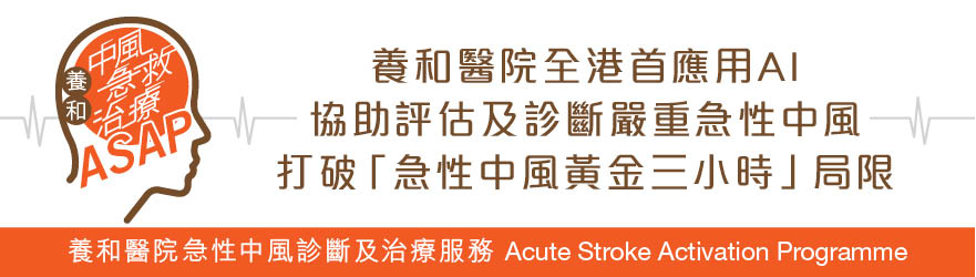 (2021年1月25日-香港)養和醫院引入人工智能系統RapidAI,透過分析急性中風病人的腦血管磁力共振造影及灌注造影影像,計算出病人剩餘可挽救腦組織的數量和比例。即使病人於病發後三小時才抵達醫院,如仍有足夠數量和比例的可挽救腦組織,亦有機會進行動脈血栓移除手術,讓中風治療不再局限於病發黃金三小時內。