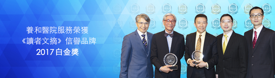 養和醫院以優質服務,卓越護理見稱,醫護服務深得公眾信賴及認同。今年醫院第九度獲頒《讀者文摘》醫院組別信譽品牌獎項,更首次獲頒白金獎。而養和醫健陳蔭燊視力矯正中心與養和醫院眼科手術中心共同榮獲《讀者文摘》信譽品牌「眼科手術中心」組別金奬,前者更是第七次獲獎。