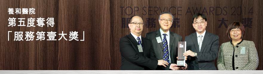 養和醫院第五度榮獲《壹週刊》「服務第壹大獎」(私營醫院組別),此獎項由公眾投票選出,本院乃全港唯一醫院獲此殊榮,足證本院「全人醫療、全心護您」(Total Patient Experience)的優質服務獲得病人和公眾認同。