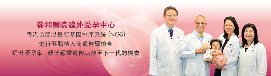 [2016年7月27日─香港] 養和醫院體外受孕中心自1986年成功孕育本港第一名試管嬰兒後,中心多年來繼續引入先進技術協助夫婦處理不育問題。體外受孕中心最新採用「新一代基因排序系統」(NGS)技術進行「胚胎植入前遺傳學篩查」(PGS)及「胚胎植入前遺傳學診斷」(PGD),協助篩選正常胚胎,有助進一步提升受孕率並減少遺傳病由父母傳至子女的機會。