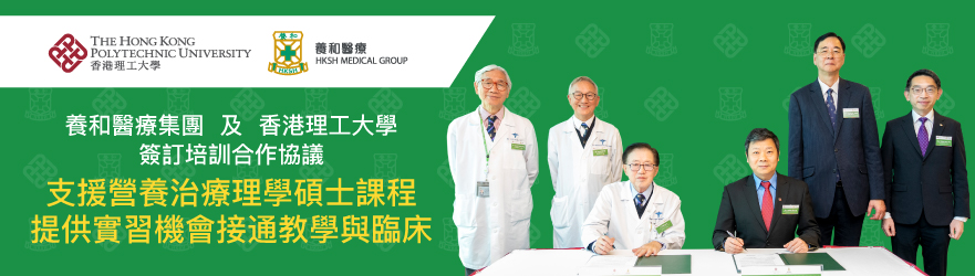 (2026 年 2 月 2 日-香港)養和醫療集團 (養和) 與香港理工大學(理大)簽訂合作協議,為理大在香港首創的營養治療理學碩士課程提供多元化的培訓機會,養和將成為首家提供營養學臨床實習及指導的私營醫療機構。是此合作標誌著雙方攜手為本地及區內的醫療、科研、教育及公共衞生等多個領域,培養具備專業知識與實踐經驗的營養專才。