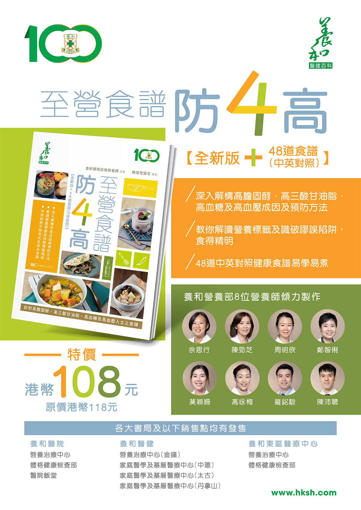 《至营食谱防4高》2009年面世至今,一直深受公众欢迎,历年来多次重印,至今已售出逾万册。全新版集养和医院8位注营养师的心血结晶,内容经大幅修订,就有效预防高胆固醇丶高三酸甘油脂丶高血糖及高血压等「4高」提供更新丶更详尽的营养资讯,并附送48道中英对照健康食谱,菜式包罗万有,让读者可以重拾自主,轻松迈向健康人生。