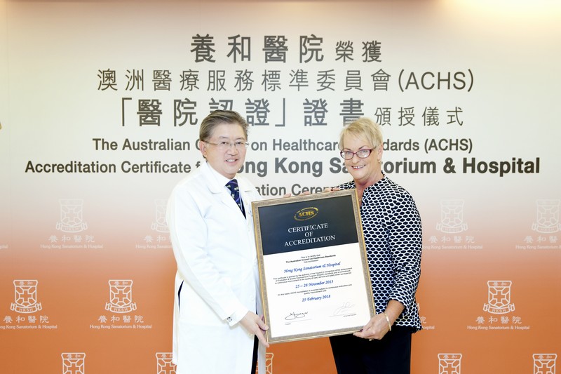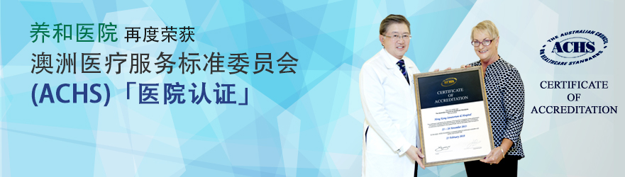 (2014 年3 月20 日 — 香港)养和医院成为香港首间医院第二次通过澳洲医療服务标准委员会 (ACHS) 的严格评审,获颁发「医院认证」证书。